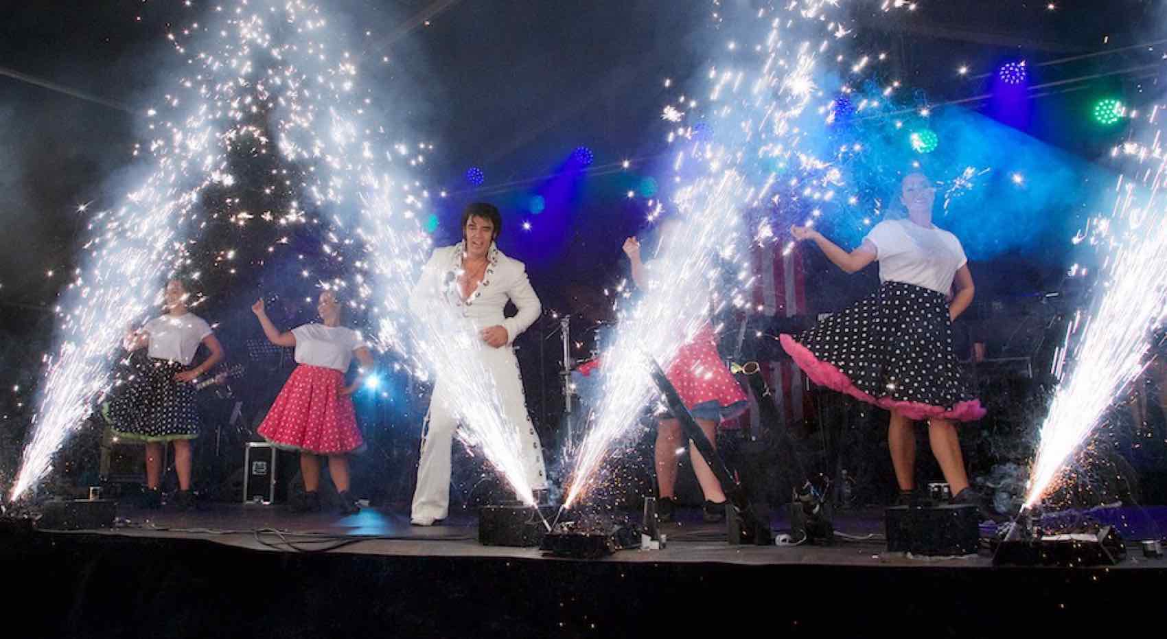“Elvis show on stages in the Town Centre”. No fewer than three stages are set up in the centre of Måløy. On both Friday and Saturday, concerts perform on the stages throughout the day.