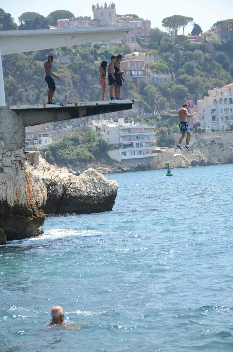 These French boys jumping from a not so secured diving tower in the old town and into the Mediterranean sea were not scared of the height – except the youngest one. He managed to find his way up, but on the top he realized the height was rather terrifying as he looked down into the sea 20 meters below.