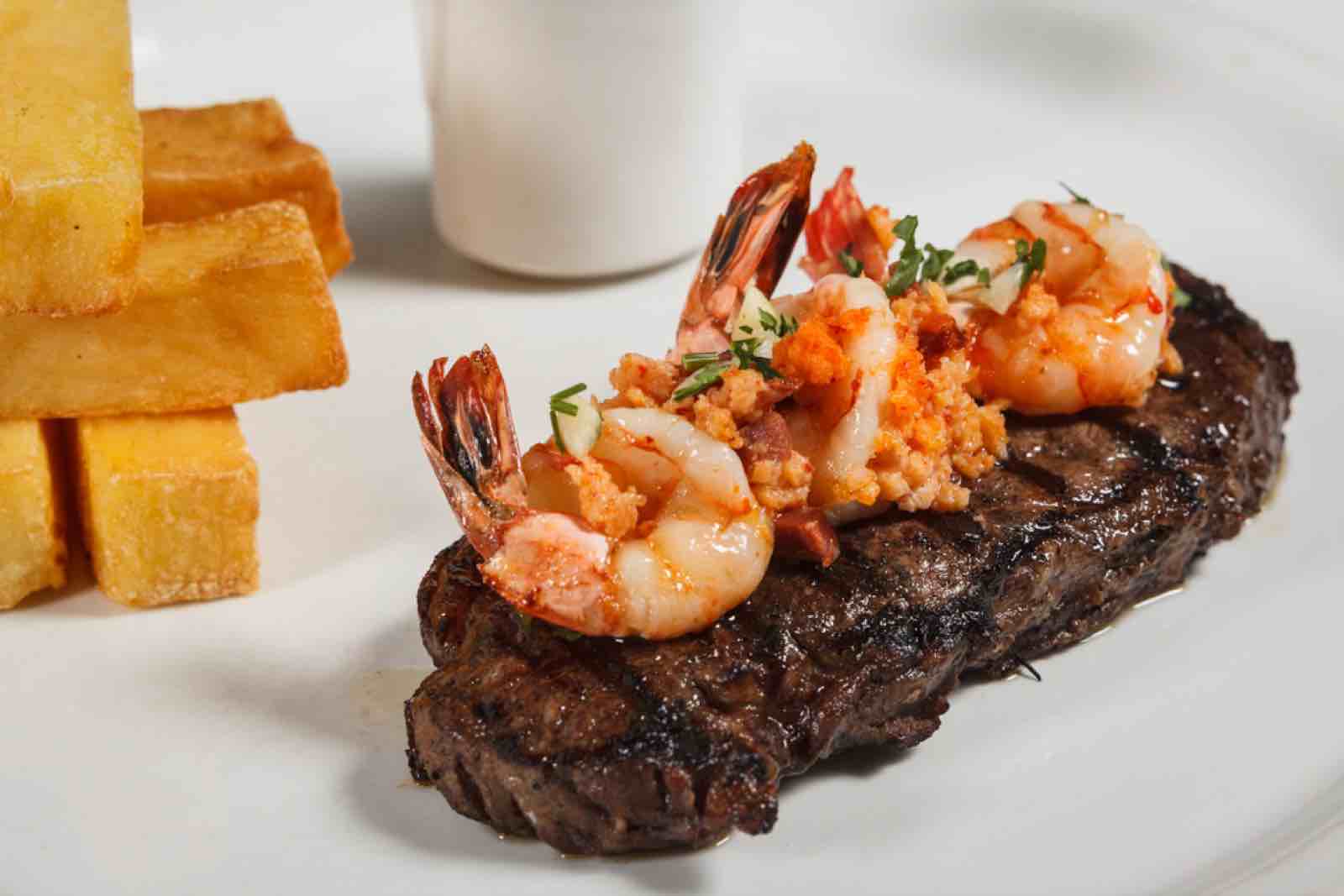 - Surf & Turf: Biff and seafood served at Fire