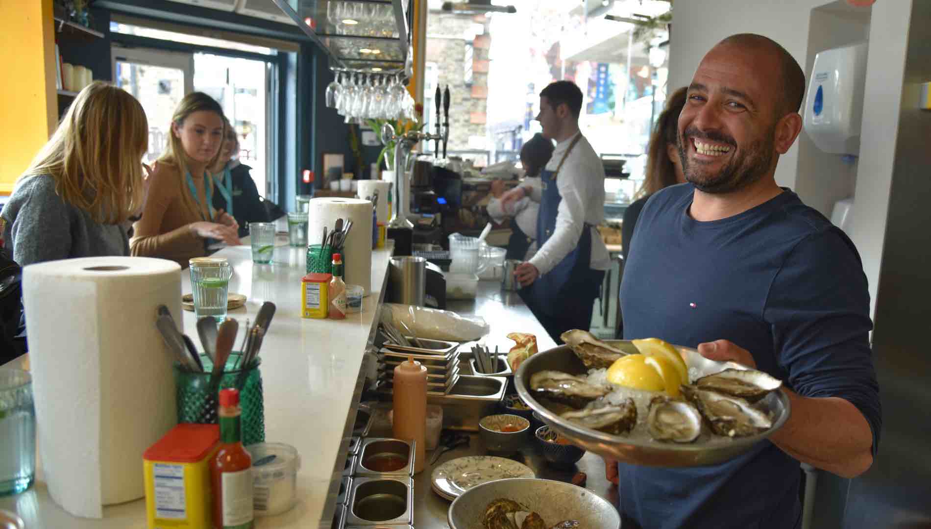 - Niall Sabongi serving fresh oysters at The Seafood Café