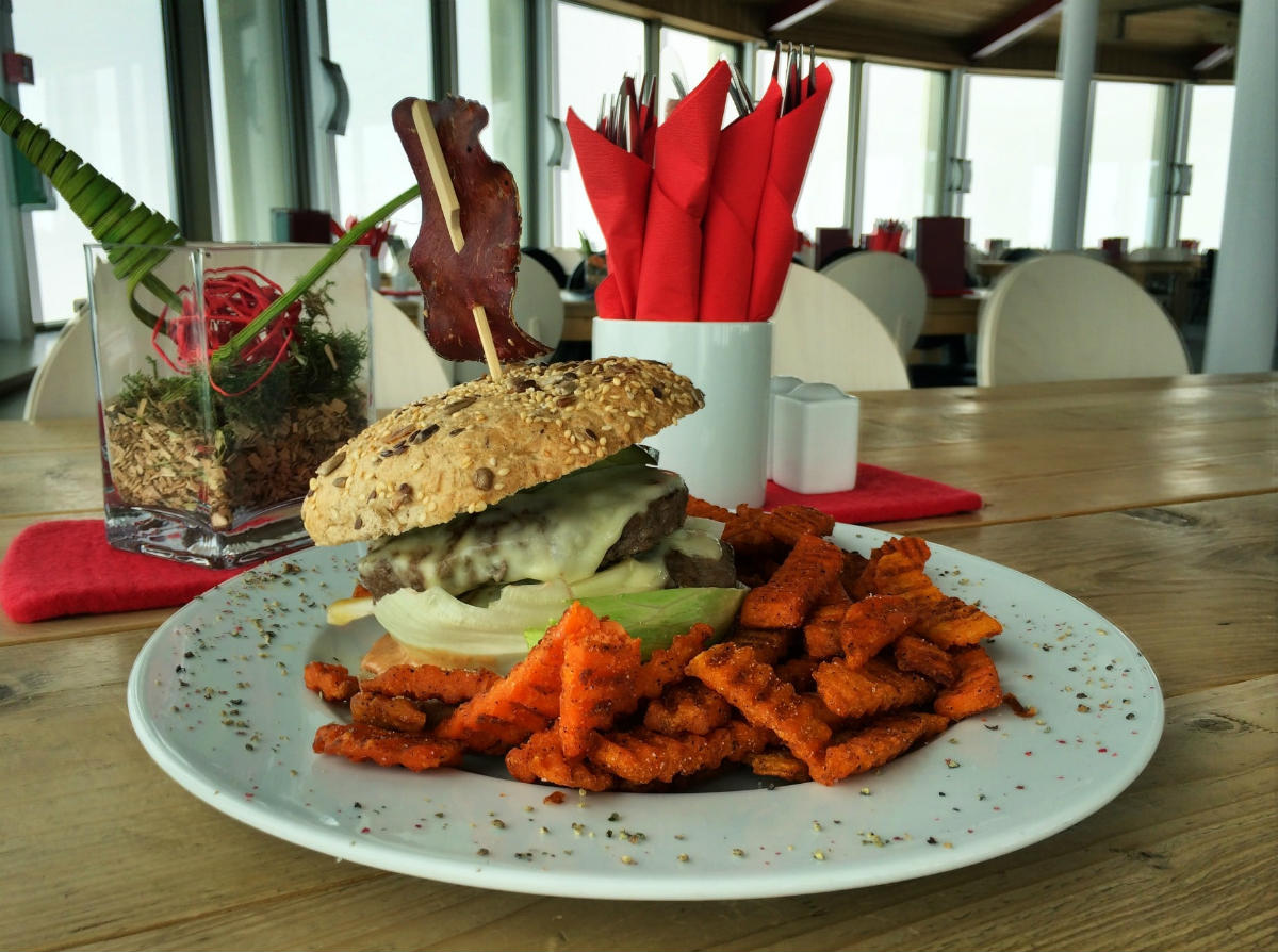 What do you eat there? Beef burger with wholegrain bread and sweet potatoes fries, everything homemade!